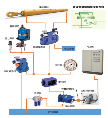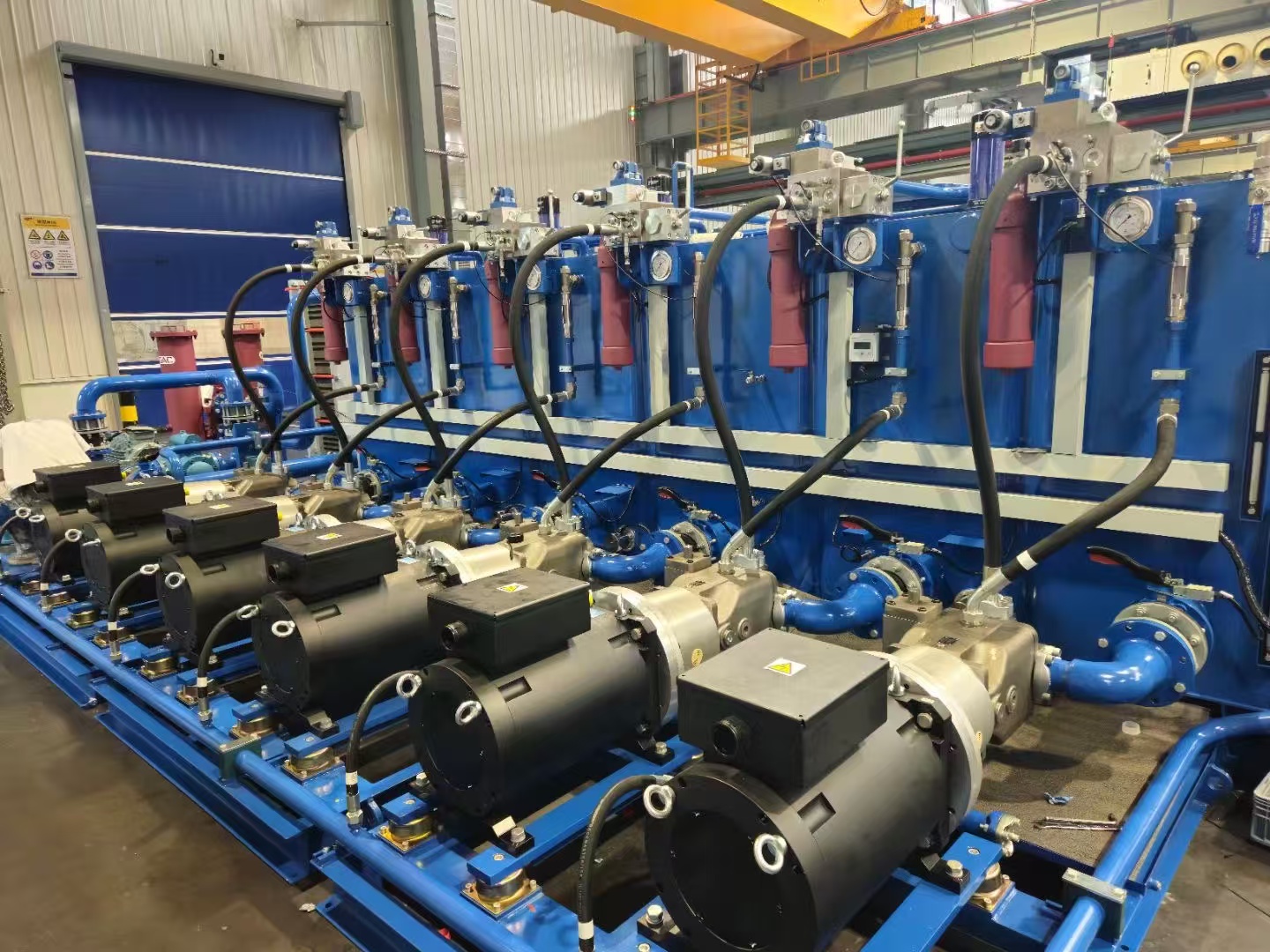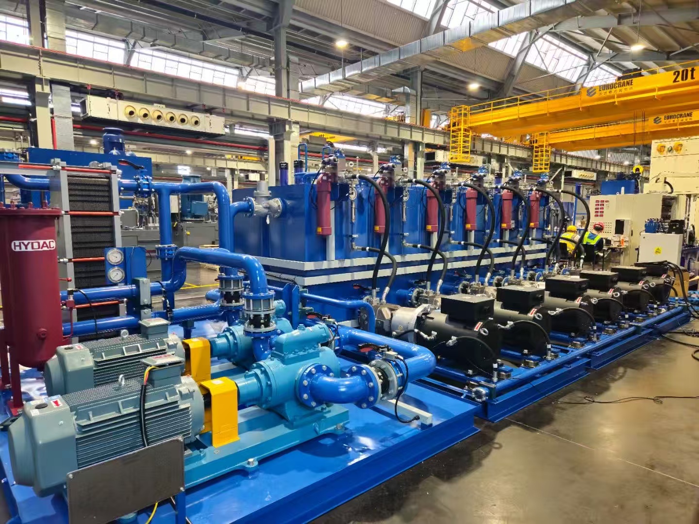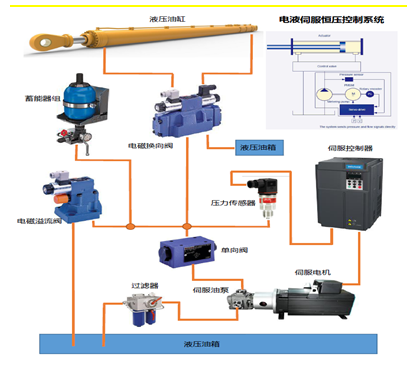 我司本着确保使用电液伺服系统后液压站高效节能、稳定生产的前提下,用伺服永磁同步电机+高压柱塞泵+液压专用伺服驱动器+压力传感器+闭环反馈同步系统,取代原异步电机+变量泵开环系统,利用伺服电机可控转速的特点,根据实时压力来调节电机的高低转速,实现液压油按需供给,从而实现节能。